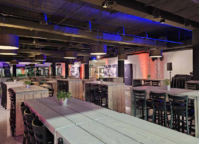 Unser Restaurant bietet eine modulare Raumnutzung sowie einen direkten Zugang zum Foyer, zur Outdoor-Area und zur BarLounge. Je nach Gruppengröße finden hier bequem bis zu 250 Personen Platz oder es können auf der Fläche weitere Eventmodule platziert werden. Wir gestalten das Konzept ganz nach Ihren Wünschen und anhand der Gruppengröße. Die offene Decke, die robusten Holzmöbel und die dezente Beleuchtung unterstreichen die moderne Atmosphäre.